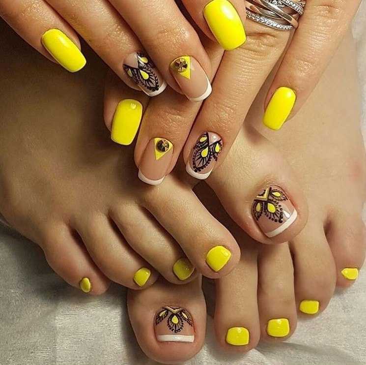 Яркий тандем желтого и черного цветов покорил многих девушек, поэтому неудивительно, что этот маникюр сейчас находится на пике популярности.