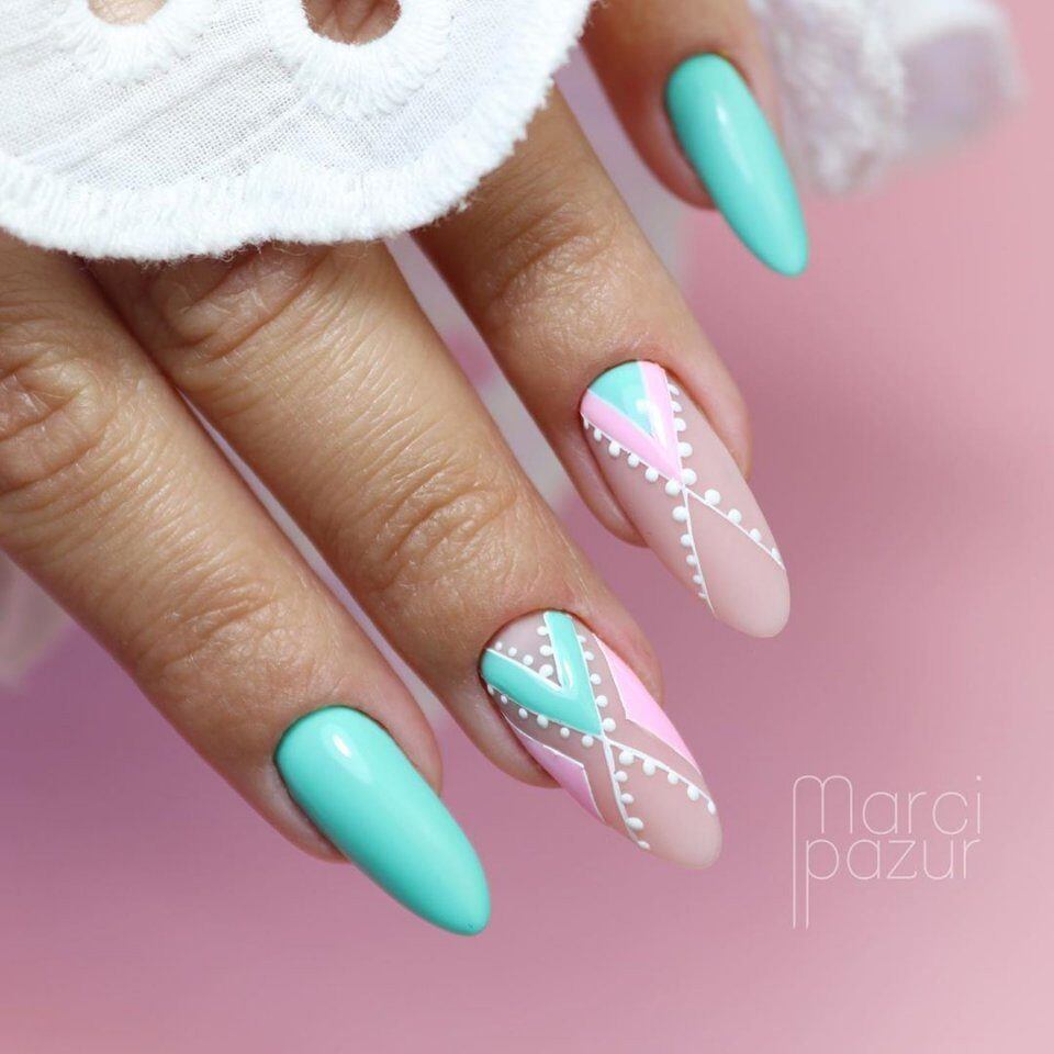 Сочетание розового и голубого в маникюре будет модным в этом сезоне. Нежный и одновременно игривый маникюр идеально подходит для летнего образа.
