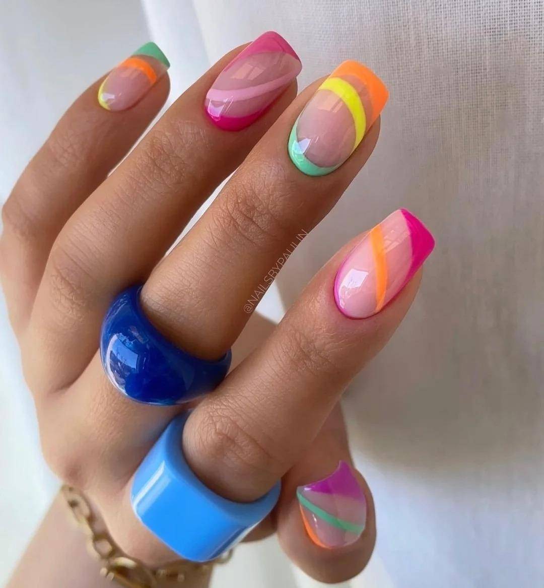 Креативный радужный маникюр просто ворвался к нам этим летом. Праздничное летнее оформление поднимают настроение.