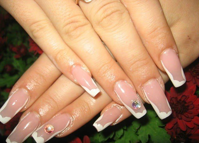 Следующим этапом следует просушивание нанесенного геля в лампе ровно 10 минут, после чего необходимо избавиться от дисперсионного слоя; После этой очищения ногтевых пластин от излишков начинается формовка французского маникюра с задействованием белого геля, после чего маникюр вновь необходимо отправить просушить маникюр в лампу, на пару минут. Однако если данный вид маникюра изначально не предусмотрен, то соответственно его пропускают. Начинается формировка нужных форм ногтевой пластины при помощи опила; Заключительный этап состоит в нанесении финишного геля на маникюр и дальнейшее высушивание в лампе в течении двух минут.