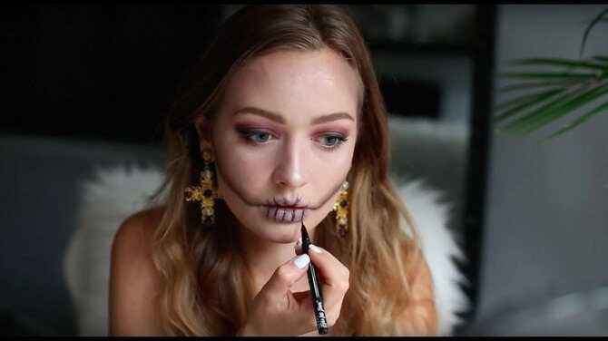 Смотрите в видео, как сделать легкий макияж на Хэллоуин: