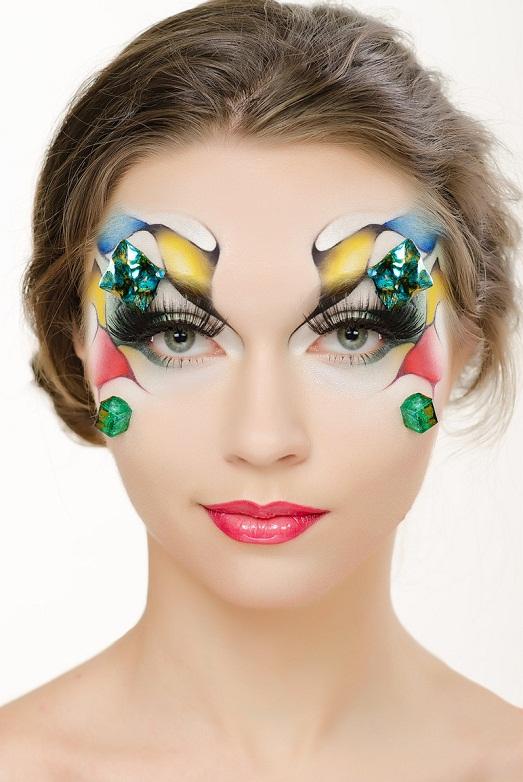 Еще одно направление в моде – арт-макияж. Это целое произведение искусства! При помощи различных страз, кристаллов, бусин и красок мастер создает неповторимый образ, который требует кропотливого труда и мастерства. Вместе с работой стилистов, внешний вид приобретает завершенность задуманной передает сказочный, театральный, необычный облик. Такой вид искусства применяется для съемок свадебных фотосессий, беременных женщин, сказочных образов для журналов и постеров и т.д.