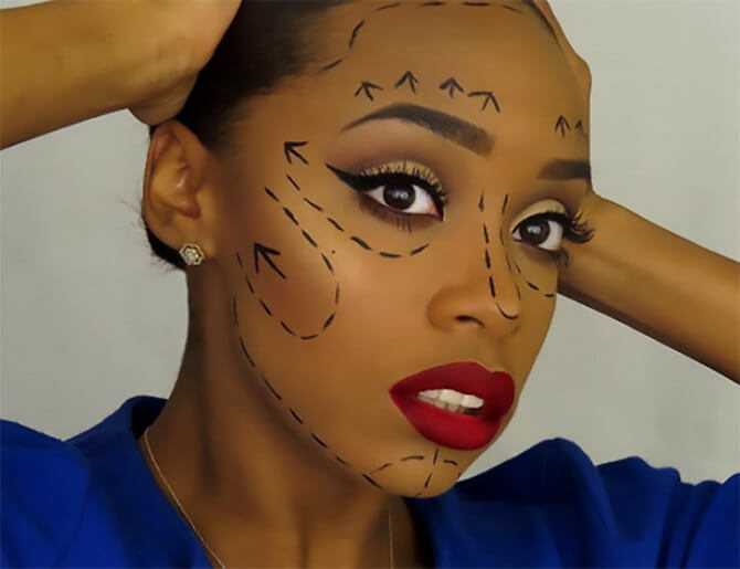 На вечернем мейкапе просто подводкой нарисуйте разметку с помощью линий как для пластической операции. Легко, но эффект протрясающий!