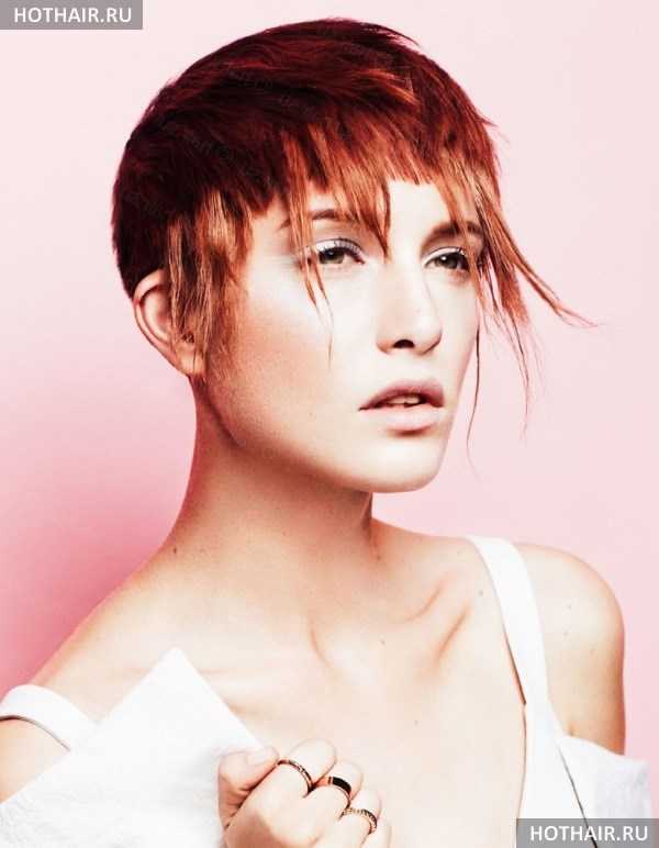 Стрижка пикси становится более женственной при наличии рваной формы челки