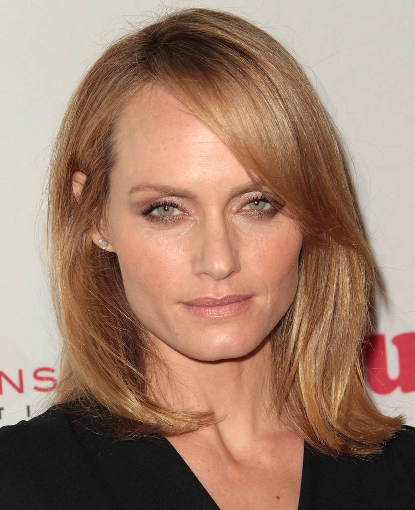 Массивная нижняя челюсть, широкие скулы и волевой подбородок не украшают девушку. Чтобы их скрыть подойдет асимметричная челка на длинные волосы с косым пробором. Передняя прядь должна начинаться от середины уха с одного бока и заканчиваться у подбородка с другой стороны. Такая асимметричная челка послужит идеальным обрамлением для лица, смягчит мужские черты, сделает их аккуратнее и женственнее. Добавить образу романтичности поможет филировка локонов.