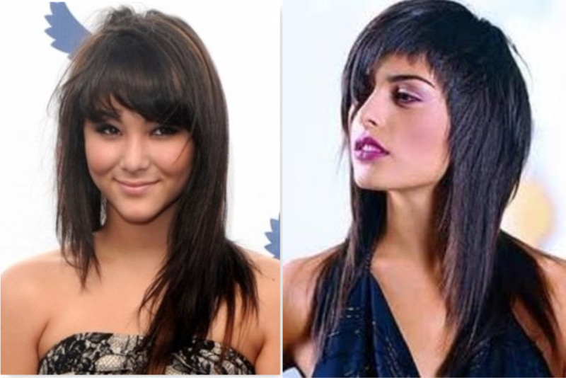 При использовании в образе длиной косой челки и всевозможных укладочных средств – обеспечен женственный и стильный внешний вид. Наиболее распространённый вариант – стрижка ниже плеч и филированная челка, доходящая до подбородка. Не менее выигрышно выглядит боб и каре, при этом нижний край челки совпадает с нижним срезом основной массы волос. Для коротких стрижек тоже показана длинная филированная челка – яркая доминанта образа. С ней короткие прически приобретают более привлекательный вид. В целом считается, что такая челка идёт к любой длине волос.