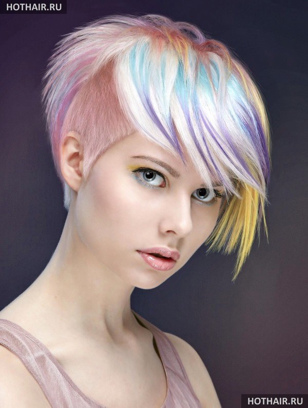 Писки делают на короткие волосы, при этом в образ женщины добавляется немного дерзости и неординарности. Самым популярным типом прически является вариант Пикси с удлиненной челкой и минимальным объемом на височной части головы. А за счет того, что на затылке локоны приподняты, добиваются увеличения объема у женщин с тонкими и редкими волосами. С Пикси можно экспериментировать, окрашивать в насыщенные цвета и укладывать в различные варианты.