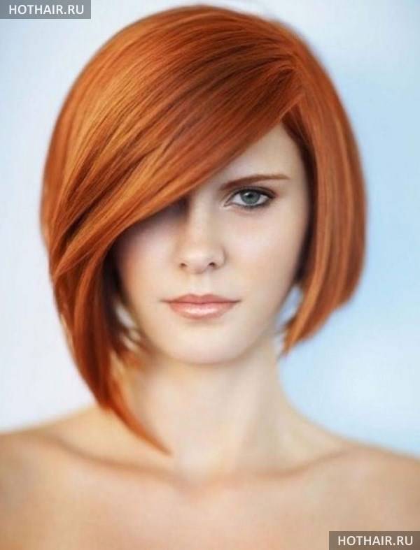 - Элегантный образ поможет создать боб–каре, который смотрится очень стильно в дуэте с косой челкой. Для создания оригинального образа ее форму можно сделать рваной или зигзагообразной.