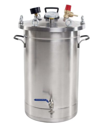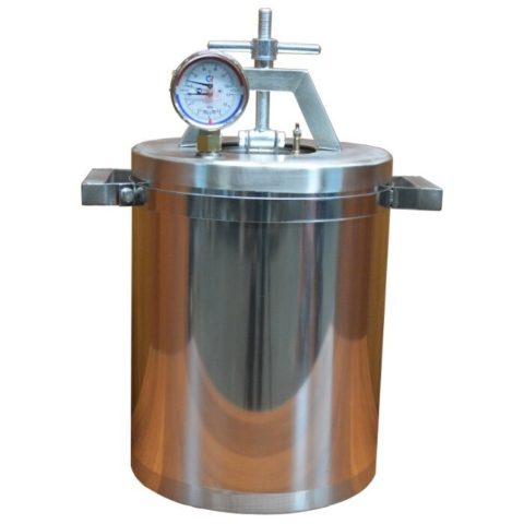 Небольшой аппарат для дома оснащен резервуаром 15 л. Выполнен из качественной нержавейки с антикоррозийным покрытием, герметично закрывается, поддерживает рабочее давление до 3 атм. Масса устройства для консервирования составляет 6,5 кг.