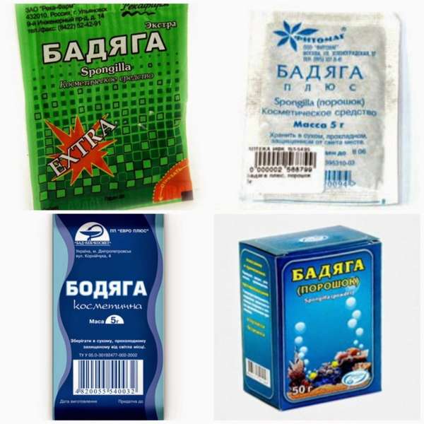 Порошок. Выпускается по 2,5, 5 г, 6 г и 10 г. Чаще всего в наружном применении используется для приготовления домашних косметических продуктов: масок, скрабов и кремов. Именно порошок считается наиболее эффективным средством против синяков, поскольку активное вещество в нём содержится в максимально высокой концентрации. Следует также отметить, что такая форма выпуска Бадяги исключает наличие в составе продукта дополнительных ингредиентов.