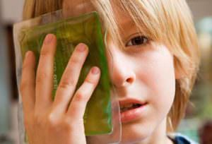При ушибе следует незамедлительно постараться охладить пораженное место любым холодным металлическим предметом, намоченным в воде полотенцем, льдом или бутылкой с холодной водой. Холод вызывает сужение кровеносных сосудов и предотвращает сильное развитие кровоподтека.