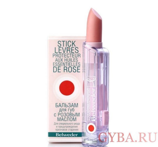 - Масло дамасской розы и масло жожоба – такое сочетание обладает целебными свойствами, помогает устранить шелушение, раздражение кожи, снимает болевые ощущения. Помада гигиеническая Belweder, предназначенная для более юных особ, смягчает кожу губ, успокаивает ее, отличается тонким и нежным ароматом.