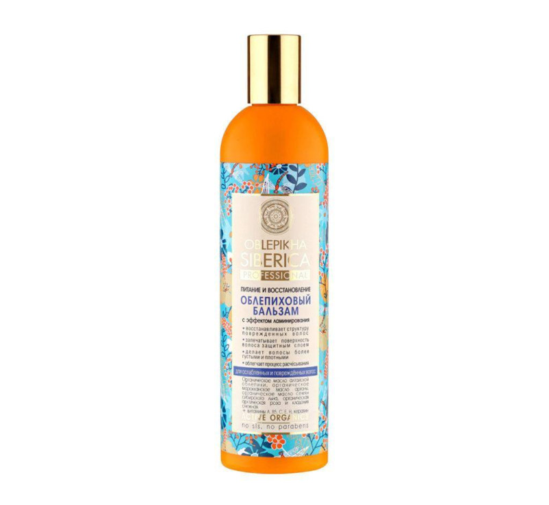 Облепиховая серия от российского бренда «Natura Siberica» относится к профессиональной косметике. Она избавлена от сульфатов, парабенов, силиконов, парафинов, отдушек, консервантов, ГМО. «Natura Siberica Oblepikha Professional» – бальзам для восстановления волос с эффектом ламинирования.