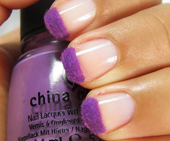 Бархатный маникюр фиолетовый френч Виды бархатного маникюра: