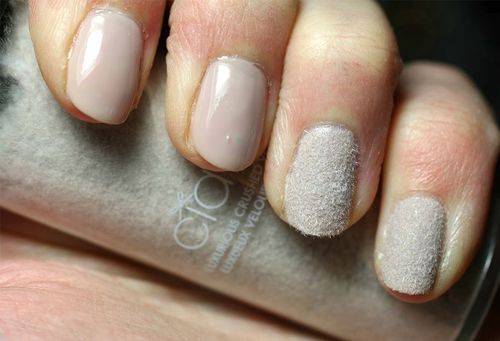 . Вопреки мнениям многих девушек, делать маникюр «бархатный песок» можно как на натуральных, так и на наращённых ногтях. При этом Вы можете использовать как профессиональные , так и обычные.