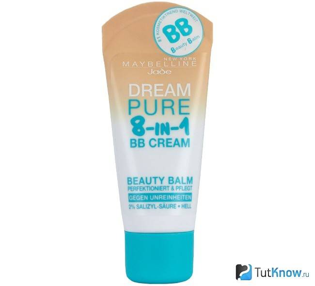 ВВ cream Dream Pure от Maybelline. Относительно недорогое и поэтому широко распространенное средство (350 рублей), способное корректировать поверхность лица. Обеспечивает защиту от лучей солнца (уровень защиты — SPF 15). Сужает поры и избавляет от жирного блеска. Изготавливается в 3-х оттенках.
