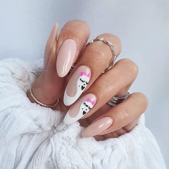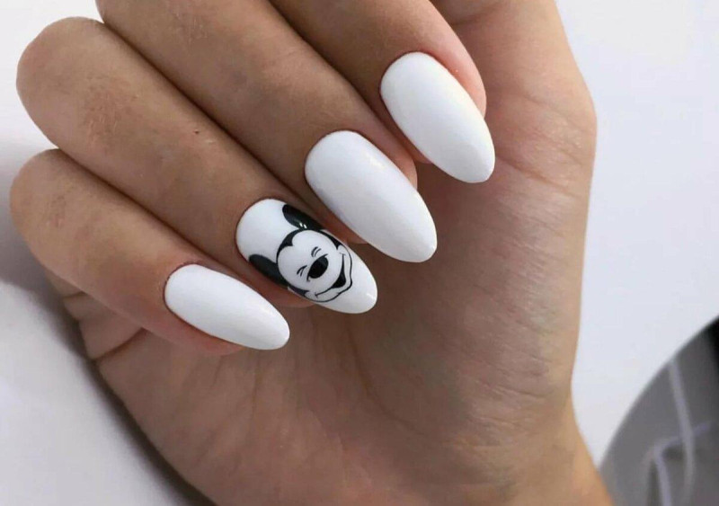 Еще один забавный и интригующий дизайн — маникюр с мультяшными героями. Он отлично подходит для повседневной носки. Герои комиксов и мультфильмов способны поднять настроение при взгляде на них. Спросом у девушек пользуются Микки и Мини Маус, оленёнок Бэмби, Винни Пух, Лило и Стич, дракон Беззубик, Бэтмен и Супермен. Каждый из них будет смотреться на ноготках круто и новомодно.