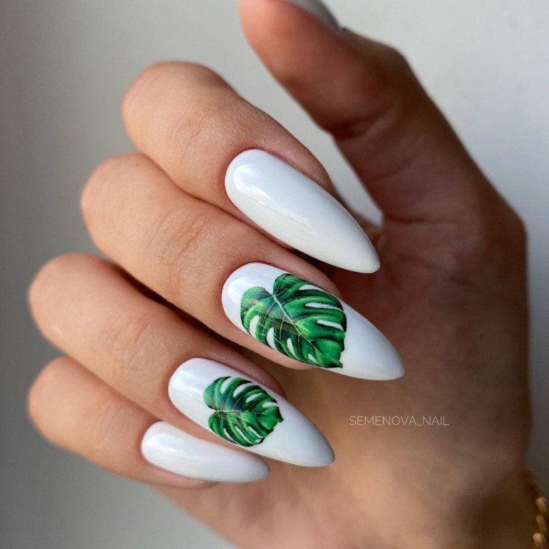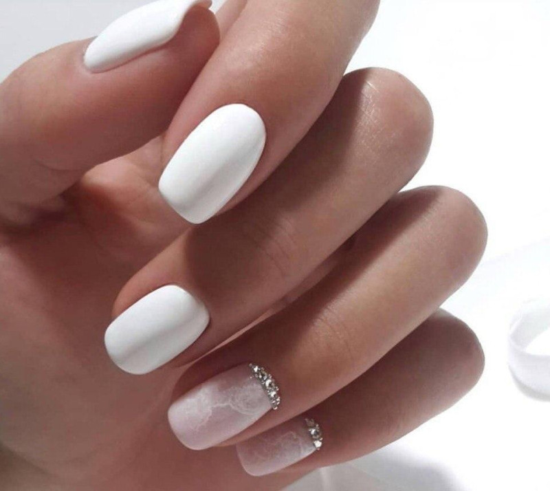 Белые оттенки идут любой форме и длине ноготков. Конечно, есть и свои небольшие нюансы, которые стоит учитывать. Тем не менее, основное преимущество белых лаков для маникюра — визуальное удлинение пластины.