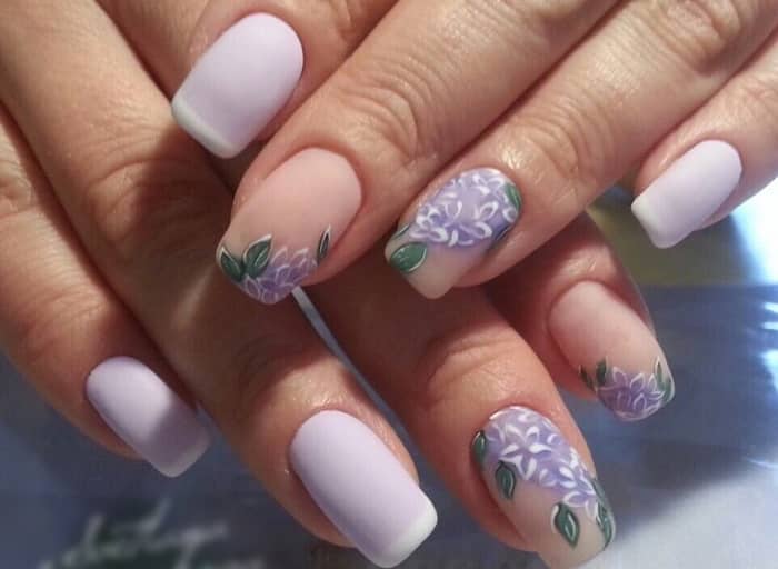 Лавандовый и фиолетовый сегодня пользуются особой популярностью. Подойдут они как для юных девушек, так и для дам в возрасте. Сиреневым рисуют саму лаванду, это очень привлекательно, поверьте.