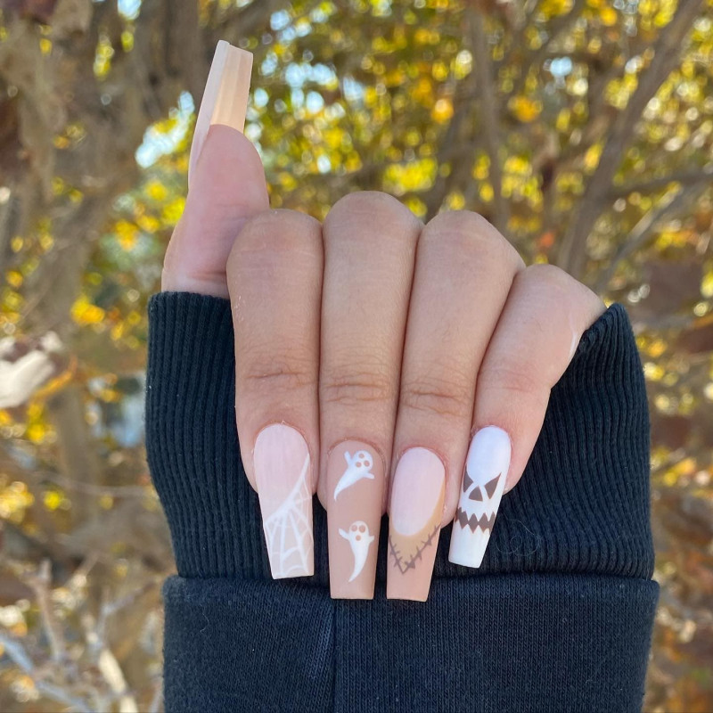 Мастера нейл арта советуют украсить длинные ноготки одним из вариантов дизайна — стразами, блестками, рисунками, использовать негативное пространство. Иначе такие ноготки в матовом исполнении будут выглядеть достаточно скучно.