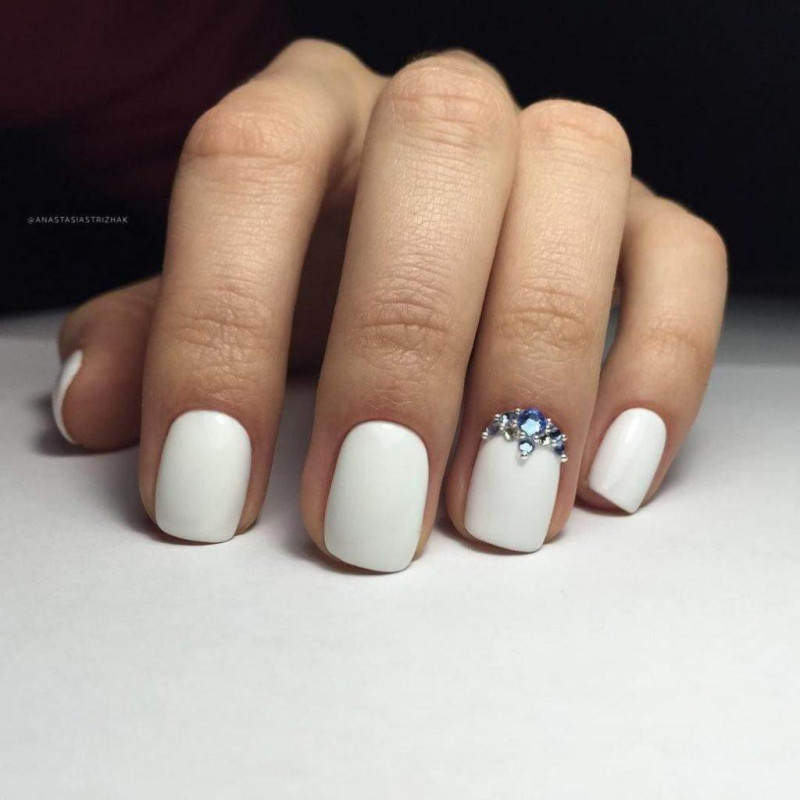 Белый матовый маникюр подойдет элегантным девушкам. Матовый топ смотрится лаконично и сдержанно, его можно наносить на любую длину, дизайн будет актуален всегда. Он хорошо смотрится в тандеме с блестками и стразами. Это шикарный вариант, который подойдет для любых встреч и мероприятий. Весной он хорошо сочетается с легким платьем, летом — с шортами и топом, осенью — с модным пальто и сапожками, а зимой — с теплым вязаным свитером. Вы точно не ошибетесь, если отдадите свое предпочтение этому дизайну ноготков.