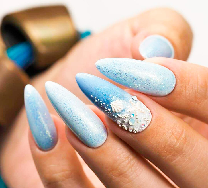Один из самых популярных оттенков в этом году – именно бирюзовый. Цвет морской волны освежает, применяют для создания пены океана.