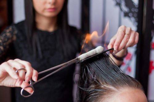 Чтобы понять, что представляет собой обжиг волос, можно попробовать обычную стрижку горячими ножницами, и только спустя время попробовать стрижку огнем.