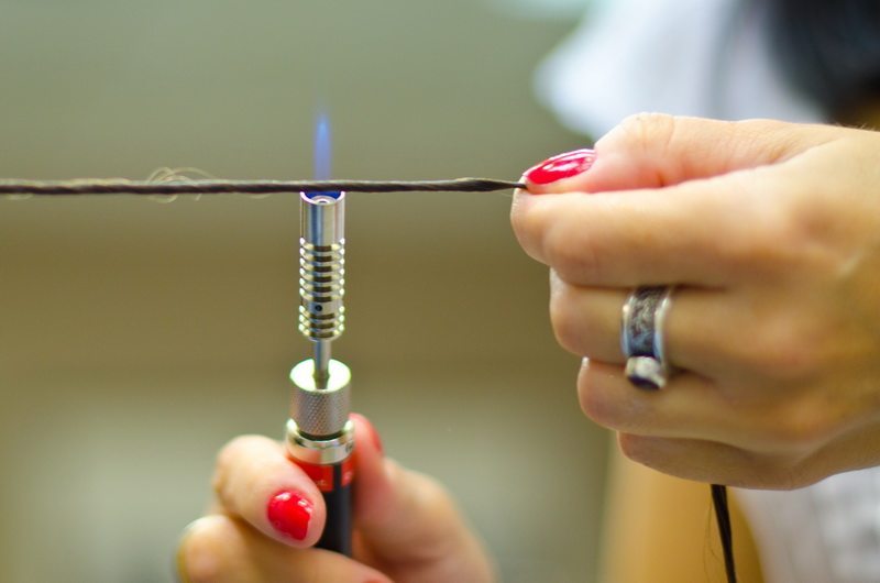 - С помощью брюлера каждый жгут обрабатывается пламенем. Таким способом сжигаются только неоднородные секущиеся концы волос по всей длине.