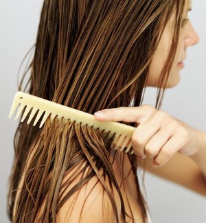 - пробор за пробором наносите на прикорневую зону состав, постепенно распределяя кашицу по всей длине прядей;