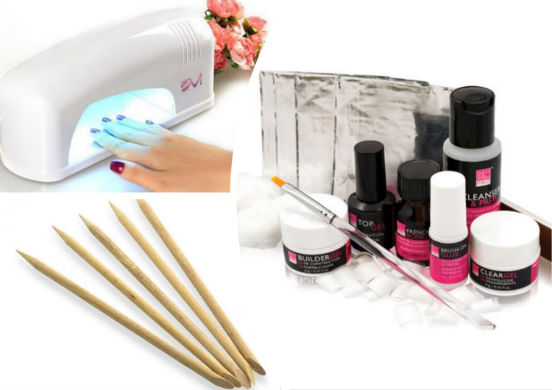 Если запастись набором биогелей и ультрафиолетовой лампой, можно наращивать и корректировать ногти в домашних условиях. Для процедуры потребуется: