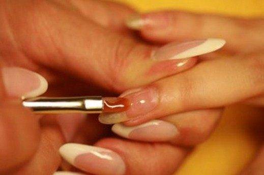 Перед наращиванием надо сделать маникюр и удалить кутикулу. Затем надо отшлифовать поверхность ногтевой пластины, удаляя лишь верхний блестящий слой. После следует снять жир с ногтей и покрыть их праймером. Такая мера позволяет укрепить ногти и существенно повышает сцепку с ними геля.