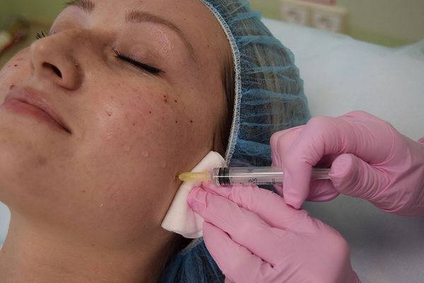 - Осуществление процедуры. Смывается макияж, очищается поверхность кожи, доктор обрабатывает антисептиком лицо. Если пациент решил делать инъекции, тогда наносится анестетик, если склонились к безинъекционному методу, тогда наносится действующее вещество. После этого косметолог приступает к самой процедуре (колит препарат или воздействует прибором).