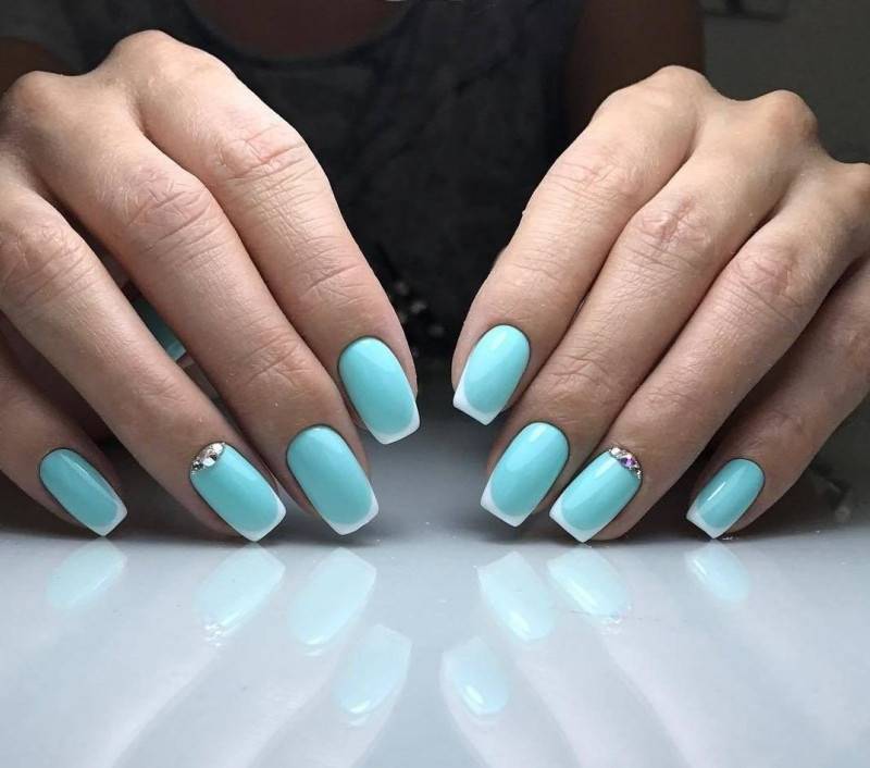 Французский маникюр как всегда в моде. Если же надоел данный дизайн в классическом исполнении, то стоит задумать о цветном бирюзовом френче.