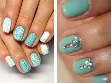 - Сочетаемость с различными элементами декора. Гибкость бирюзового нейл-арта поражает. Его вы можете сочетать практически с любыми дополнительными украшениями. Все благодаря легкой нейтральности и нежности, которую символизирует окрас.