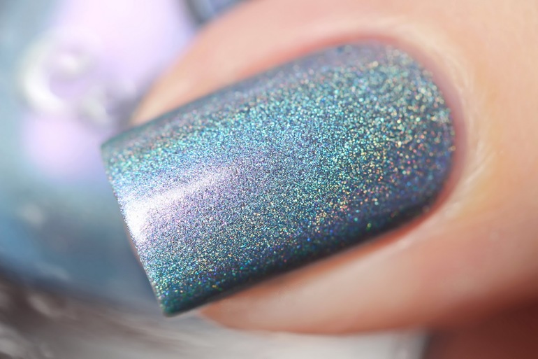 - Северное сияние. Сверху на бирюзу можно наносить нежные серебристо-белые блестки, постепенно сгущая их ближе к кончикам. В результате получается очень красивый мерцающий переход, чем-то напоминающий северное сияние в полярную ночь.