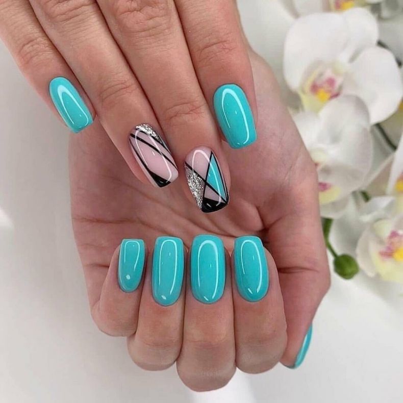 Короткий бирюзовый маникюр: фото-новинки стильного дизайна 2021-2022