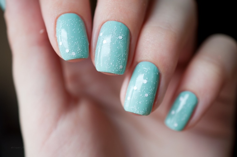 Многие представительницы прекрасного пола обожают блестки, но чтобы они хорошо смотрелись на ногтях и не казались броскими и слишком вульгарными, рекомендуется применять такой дизайн только на нескольких пальцах рук. Бирюзовый шиммер не является в этом плане каким-то особым исключением из правил: