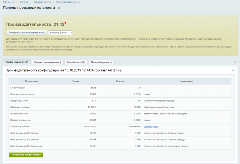 Run the performance monitor built into Bitrix24. The picture should not be very different from this (do not pay attention to the language, this is an international project):