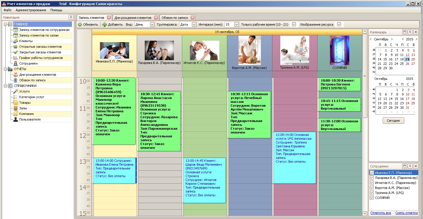 Система позволяет проводить учет клиентов, записи на услуги, следить за расписанием работы мастеров, вести финансовый учет и многое другое. Все эти функции объединены в удобный и интуитивно понятный интерфейс, что облегчает работу персонала и увеличивает удовлетворенность клиентов.
