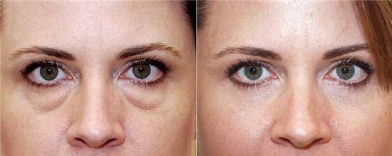 - полностью удается избавиться от мешков под глазами;