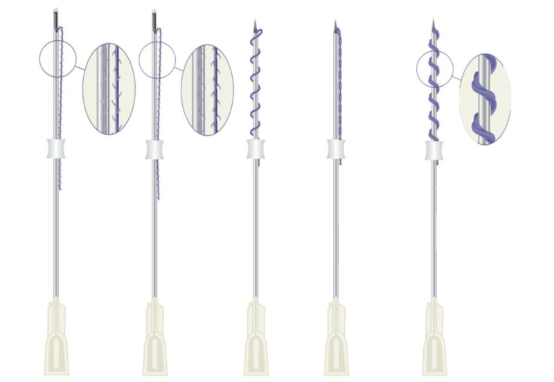 - Введение под кожу канюлей с нитями заранее выбранной конфигурации.