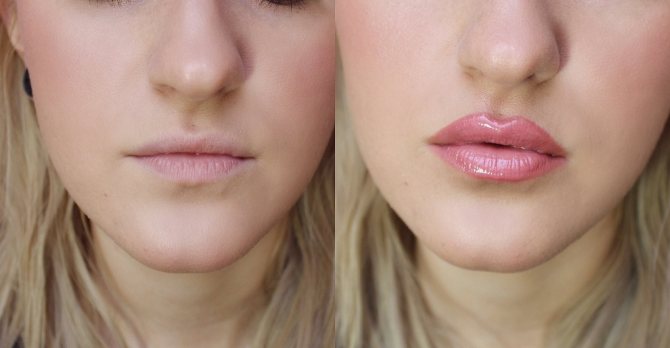 Эти суперэффективные средства не имеют ограничений в применении. Женщина в любом возрасте может использовать блеск ежедневно. Визуальный эффект проявляется сразу после нанесения. Губы немного набухают.