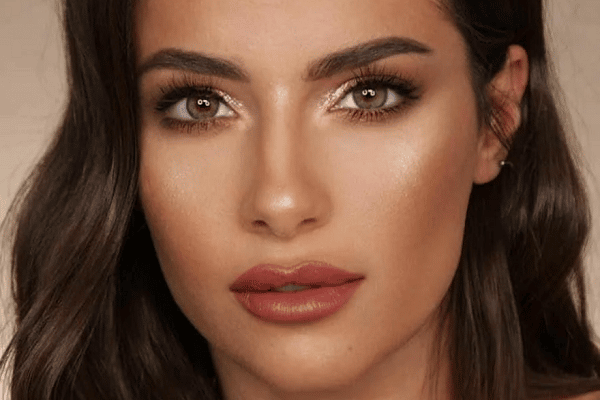 Пример дневного макияжа для серых глаз, расположенных близко друг от друга: