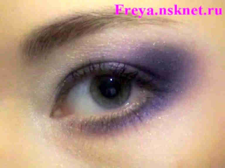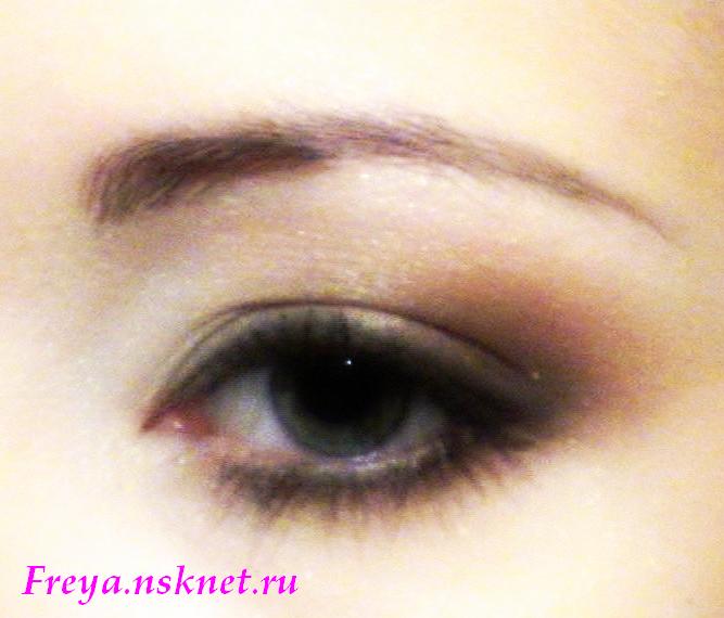 Начинать нужно от внутреннего уголка глаза до внешнего. Как следует растушуйте тени.