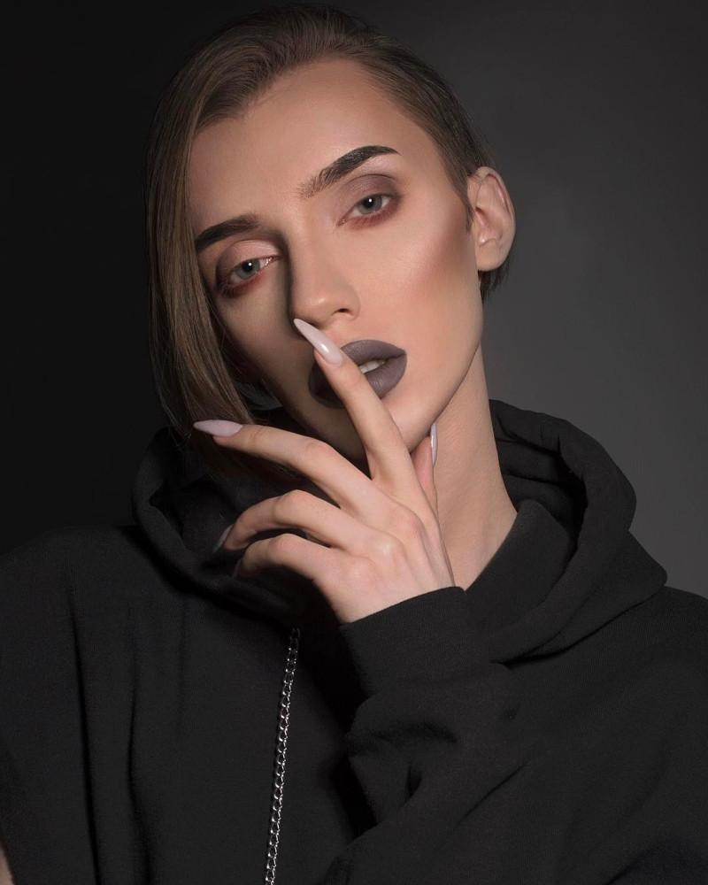 Молодой блогер уделяет огромное внимание макияжу, глазам. Он не представляет свою жизнь без накладных ресниц и стрелок