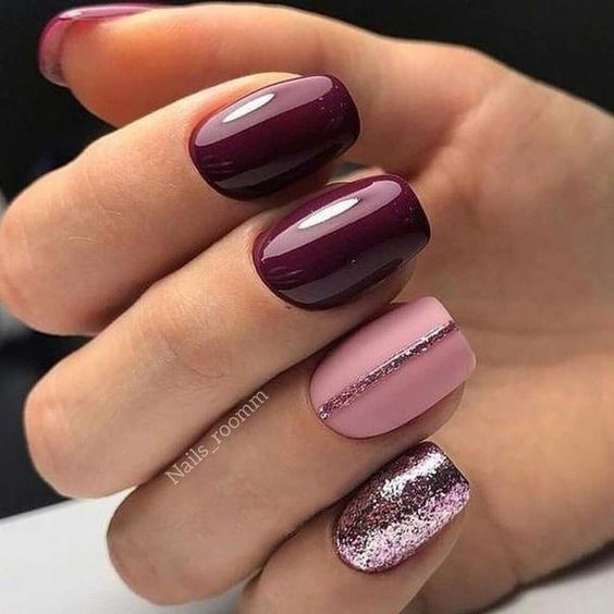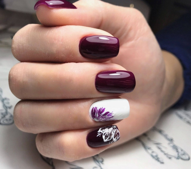 Модные дизайны маникюра в бордовых тонах
