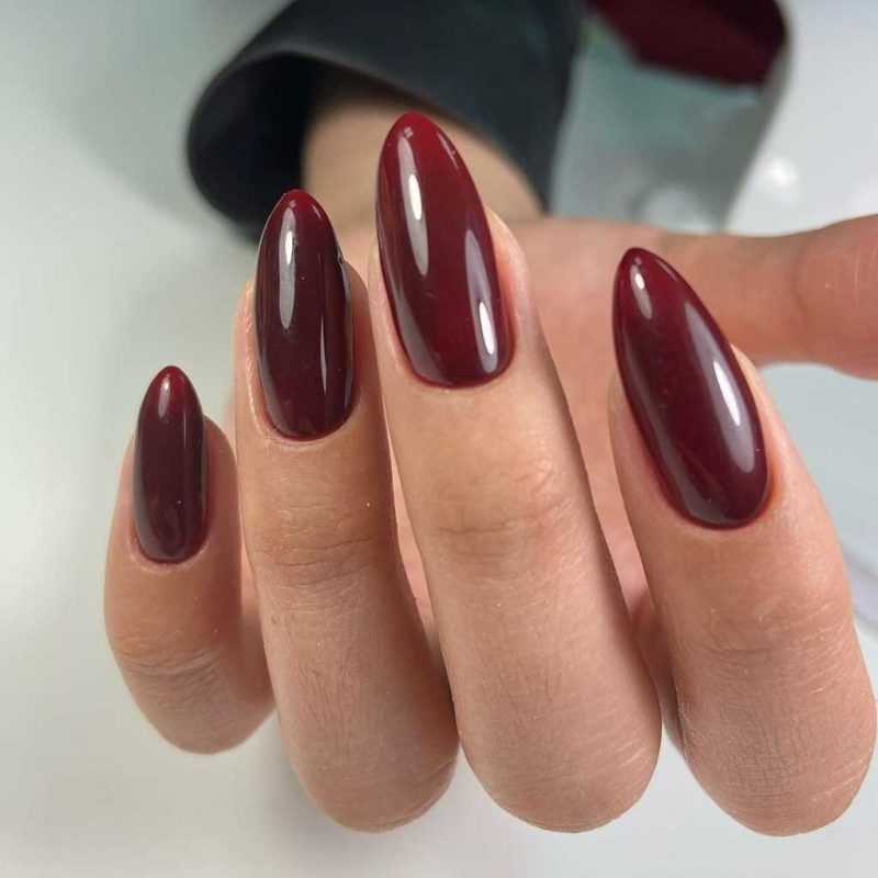 Если у вас миндалевидные ногти и вы никогда не пробовали покрыть их бордовым лаком, только посмотрите, как это красиво и сексуально!