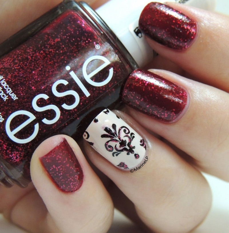 Также летом с помощью рубинового, винного цвета лака выполняют рисунки и орнамент, которые сразу придадут ноготкам женственности и элегантности. Бордовый зрительно омолаживает кожу, поэтому подходит для дам любого возраста. Он годится для праздничного маникюра и офисного применения, если подобные оттенки одобрены дресс-кодом организации.