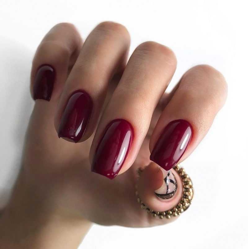 Темно-красный цвет подчеркнет минимализм коротких ногтей и сделает их выделяющимися.