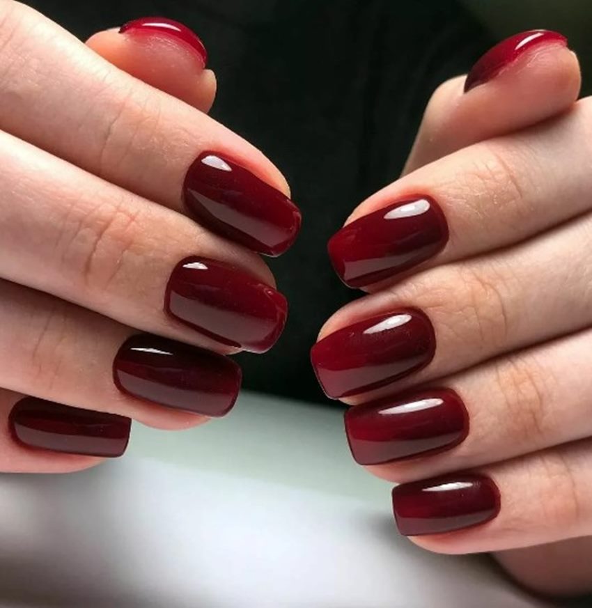 Темно-красный цвет подчеркнет минимализм коротких ногтей и сделает их выделяющимися.